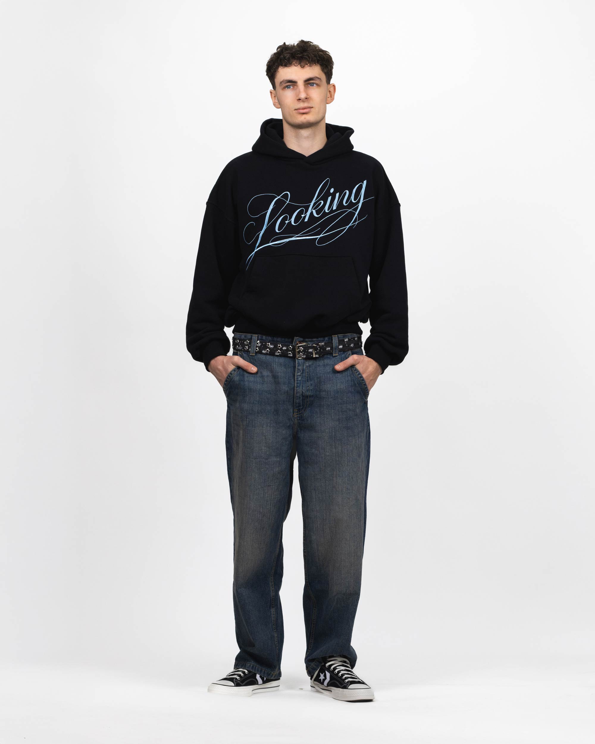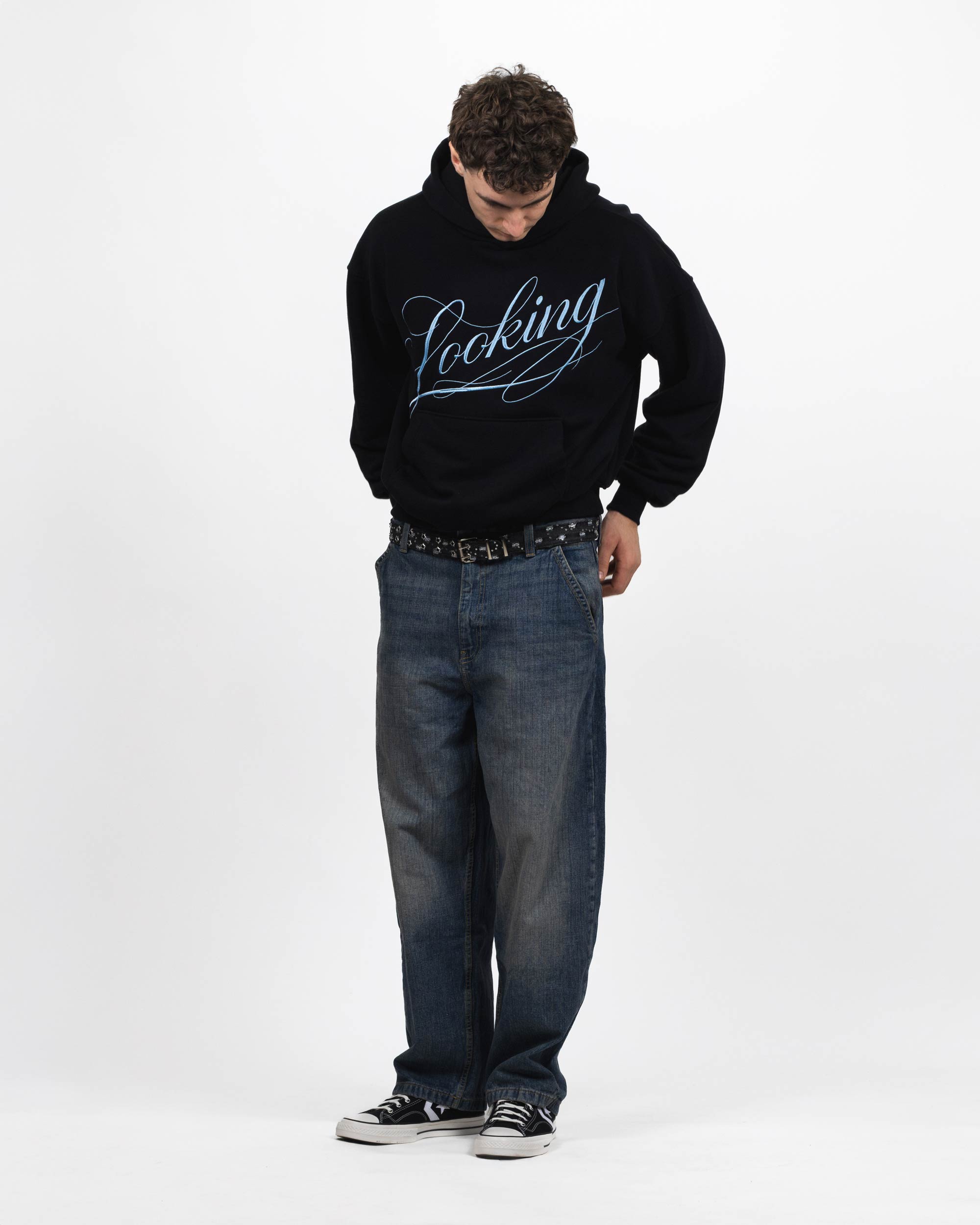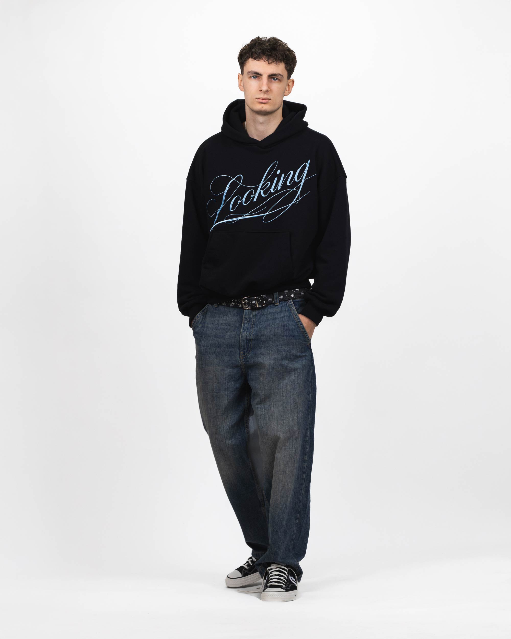 • Haftowany napis LOOKING w kolorze ICE BLUE